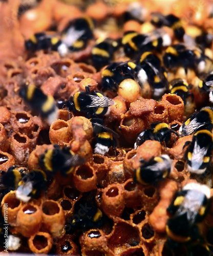 © DWP, Fototapeta premium bumblebee at work at a natural humble nest