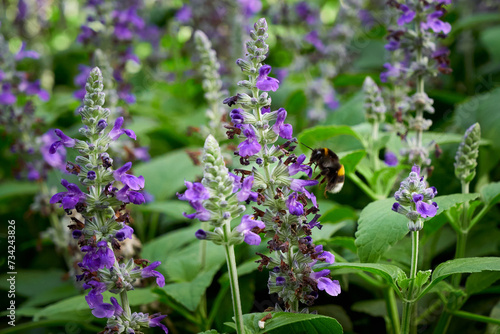 Naklejka premium Bumblebee collecting nectar from Salvia flower ( Salvia officinalis )