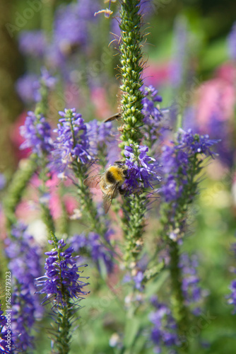 © teine, Obraz premium Bumblebee on a blooming spiked speedwell plant in summer