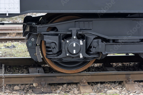 Naklejka premium Bumper and coupler - hang rail car .Freight (cargo) train - black cars...