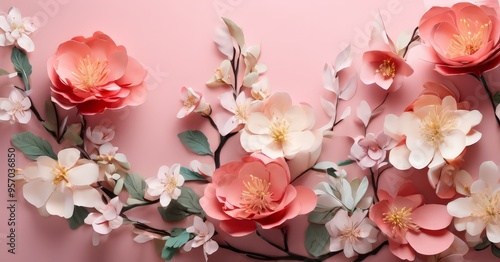 © Nipon, Obraz premium bunch flowers on pink background