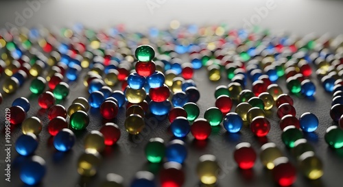 © isa, Obraz premium Bunch of colorful lights on white surface with white wall in the.