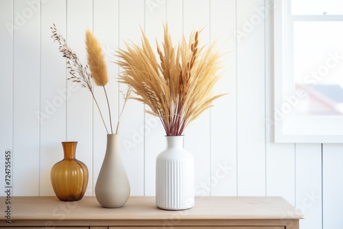 © primopiano, Naklejka premium bunch of dried pampas grass in a white vase