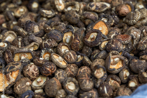 Obraz premium Bunch of fragrant dried shiitake mushrooms close-up