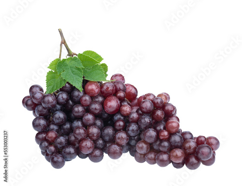 © siriratsavett88, Fototapeta premium Bunch of fresh red grape fruit with green leaf . fruit high vitamin C. on transparent.