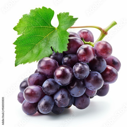 © nsit0108, Fototapeta premium Bunch of fresh red grapes with a leaf, isolated on a white background