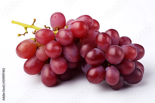 © MdArshed, Fototapeta premium Bunch of Fresh Red Grapes with Stems, Natural Texture on White Background