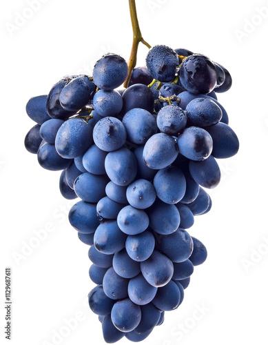 © Олег Мальшаков, Fototapeta premium Bunch of fresh wet blue grapes hanging on transparent background