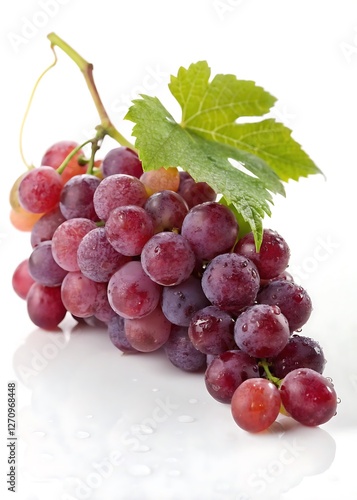 Fototapeta premium Bunch of grapes with a leaf on top