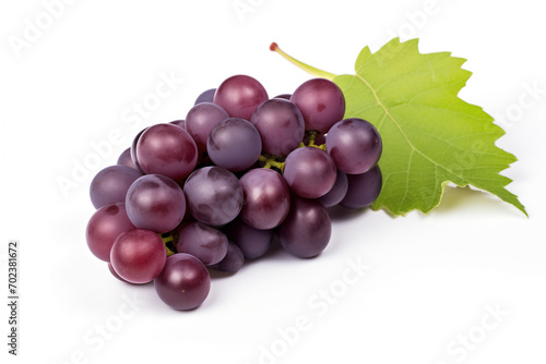 Fototapeta premium bunch of grapes with purple berries, isolated on white background, leaves