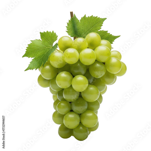 © Md, Obraz premium Bunch of Green Grapes Hanging with Fresh Leaves, Healthy Fruit Snack for Natural Food and Diet Advertising