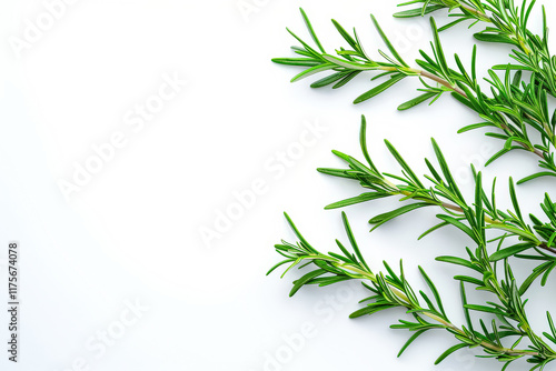 Fototapeta premium Bunch of green herbs are arranged in a row on a white background