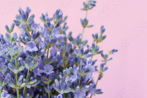 © Elena, Fototapeta premium Bunch of lavender on a pink background