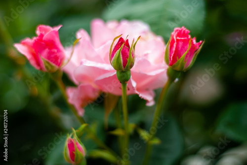 Fototapeta premium Bunch of pink roses, not yet fully bloomed