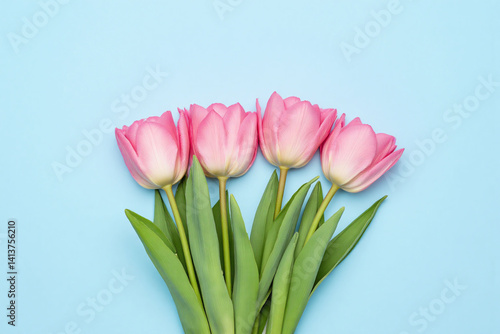 © Mingqing, Fototapeta premium bunch of pink tulips on a white background