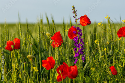 © pfongabe33, Obraz premium bunch of poppies in a wheat field field