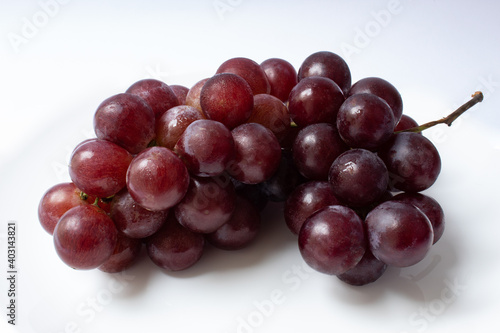 © Maria Thomazi, Fototapeta premium Bunch of red globe grapes isolated on white background