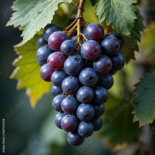 © 시로K, Fototapeta premium Bunch of red grapes on vine in vineyard, close up