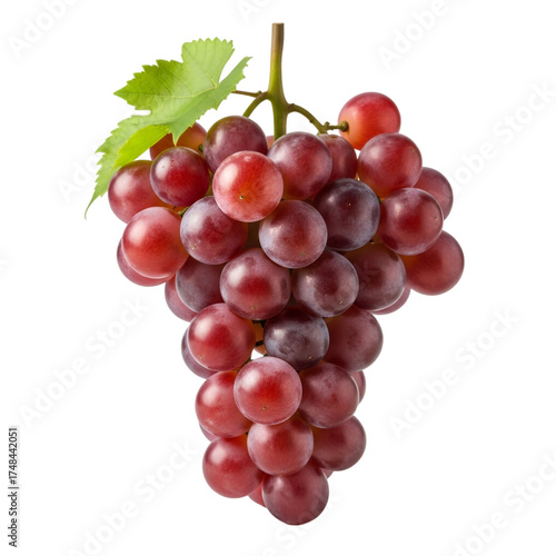 © Ali Designer, Fototapeta premium Bunch of Red Grapes with Green Leaf on Black Background