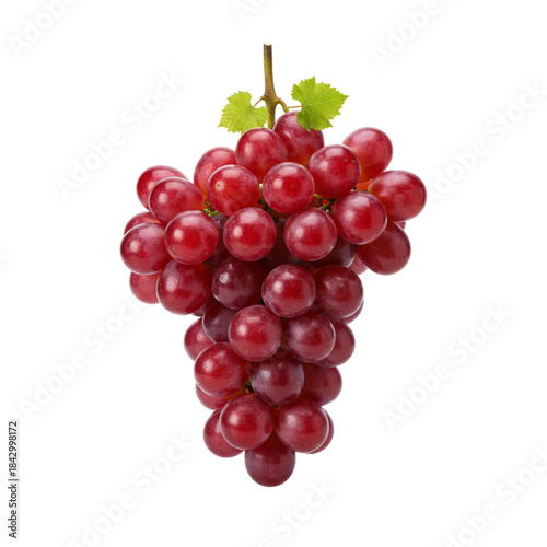 © AI Creatives Studio, Fototapeta premium Bunch of Red Grapes with Green Leaves Isolated on White