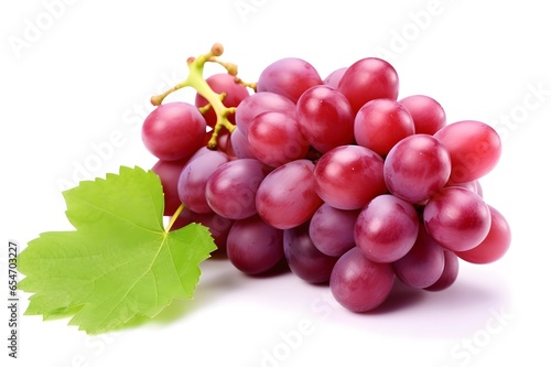 Fototapeta premium Bunch of red grapes with leaf isolated on a white background