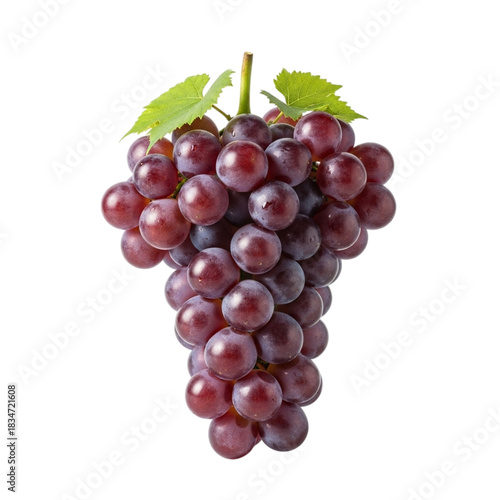 © Md. Habibur, Fototapeta premium Bunch of Ripe Red Grapes with Green Leaves on Black Background fruit