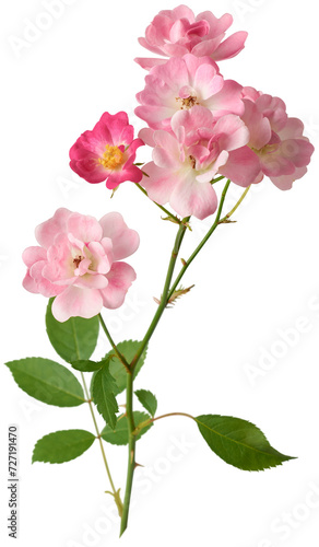 © Shamil, Fototapeta premium bunch of roses with leaves, timeless symbol of love and affection, pink and red color beautiful blooming blossom, isolated on white background