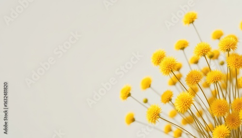 © Muksuthida, Fototapeta premium Bunch of small yellow flowers with slender stems creating a vibrant and cheerful display against a solid light background