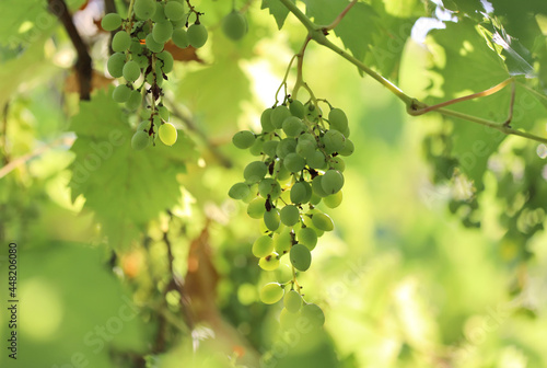 © KSCHiLI, Fototapeta premium Bunch of white grapes close up