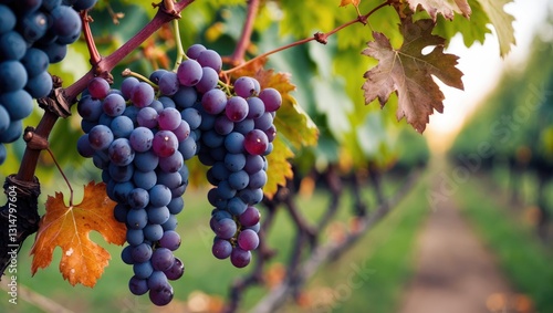 © MetaPixel, Obraz premium Bunch of wine grapes from the hilly region that leads into the Prealps. The specific climate imparts to the wine a unique and distinctive inimitable flavor.