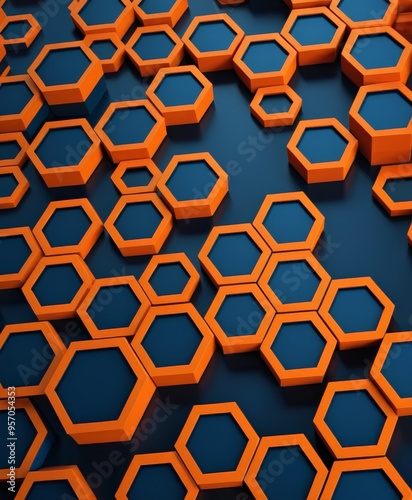 © Nipon, Obraz premium bunch orange hexagons on blue background
