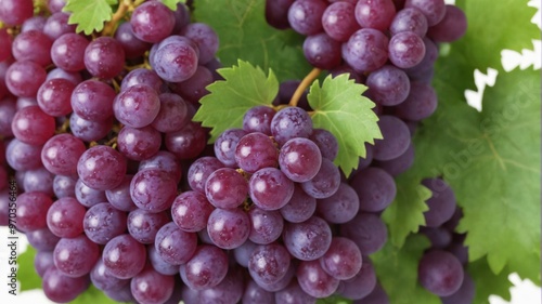 © Panuwat, Fototapeta premium Bunch purple grapes green leaves are round plump A symbol
