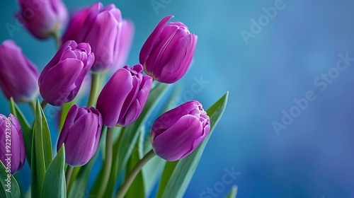 © Robert, Fototapeta premium bunch violet tulips on blue background