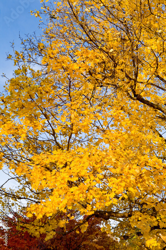 Fototapeta premium Bunch Yellow Autumn Maple Leaves Tree