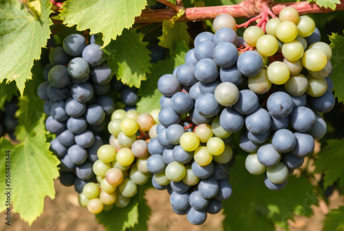 © Dejana, Fototapeta premium Bunches of grapes hanging from vine in vineyard