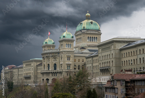 Obraz premium Bundeshaus Bern Switzerland. Stormy site
