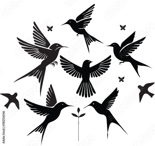 © jhutan_design, Fototapeta premium Bundle Image Bird Silhouette Vector Art on White Background 03