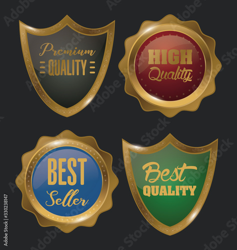© Jemastock, Obraz premium bundle of badges golden emblems icon