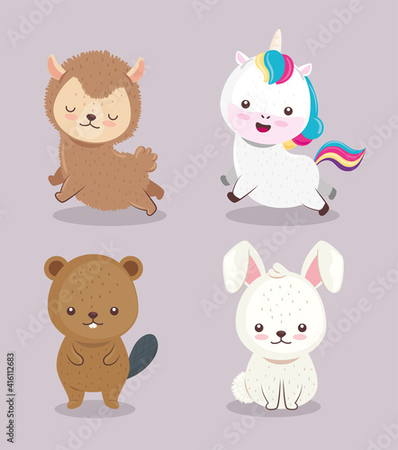 © Gstudio, Naklejka premium bundle of four cute animals set icons vector illustration design