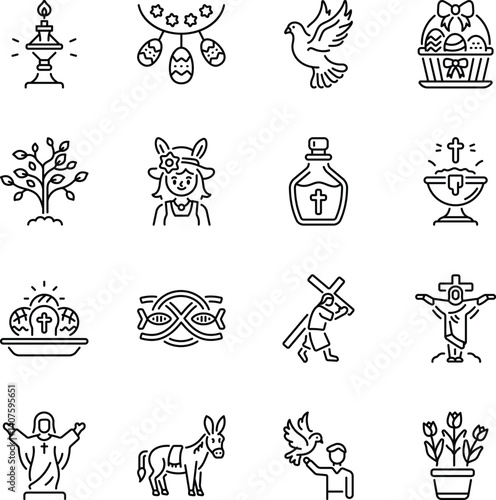 Fototapeta premium Bundle of Linear Style Easter Festival Icons