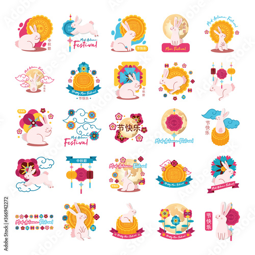 © Gstudio, Fototapeta premium bundle of mid autumn festival set icons