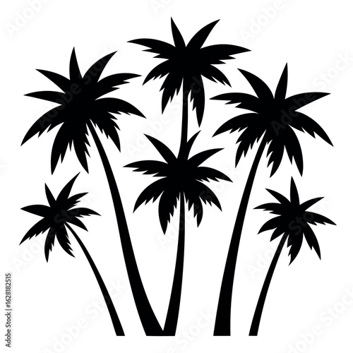 Obraz premium Bundle of 7 palm tree silhouettes isolated on white background