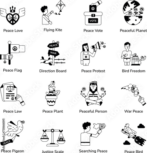 Fototapeta premium Bundle of Peace Awareness Glyph Icons