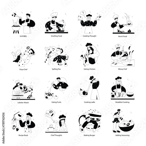 Fototapeta premium Bundle of Professional Cooking Doodle Mini Illustrations
