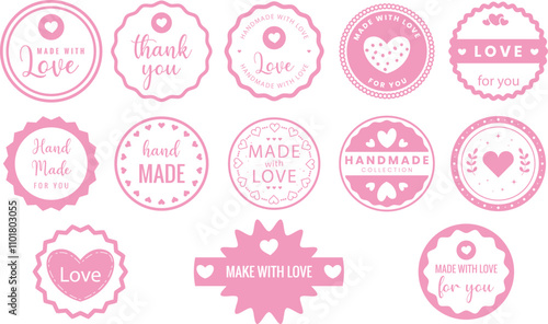 © Hadia, Fototapeta premium Bundle of thank you stamps (hand made, thank you, hand made collection, made with love)