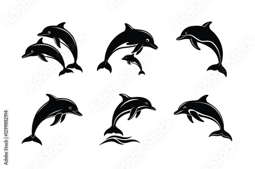 Fototapeta premium Bundle Vector Silhouettes of Playful and Jumping Dolphins