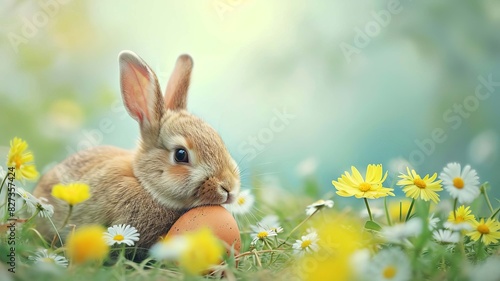 © Milena, Fototapeta premium bunnies and Easter eggs on a white background. Selective focus. Generative AI,