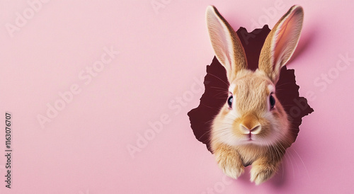Obraz premium bunny breaking through a pink wall