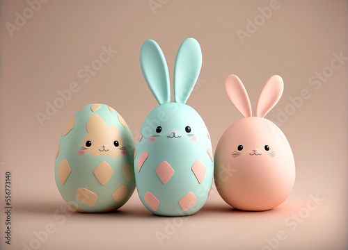 Obraz premium Bunny cute pastel colored easter eggs 3d rendered, generative ai