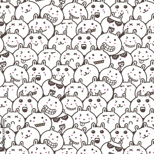 © OneyWhyStudio, Obraz premium Bunny Doodle Art Pattern Background. Vector Illustration.